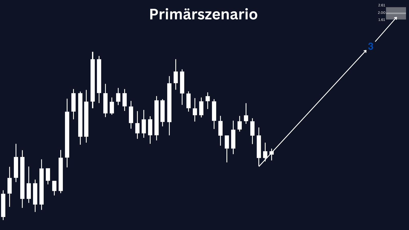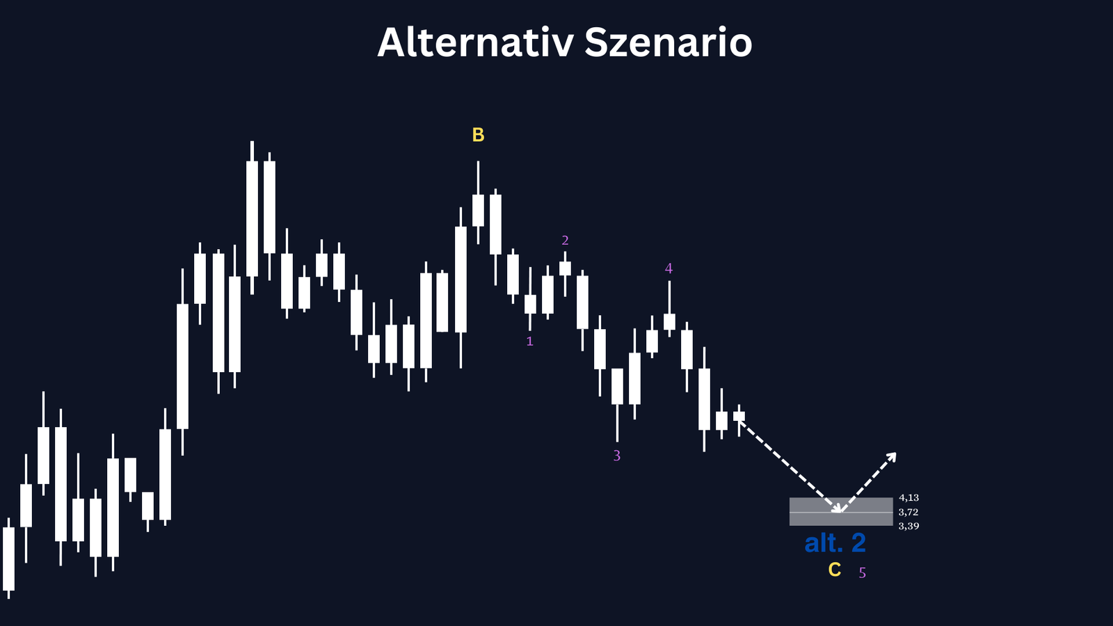 Aktive Zielzonen werden in unseren Analysen durch türkise Bereiche hervorgehoben. Sie stellen unsere primäre Erwartung dar – wir gehen also davon aus, dass der Kurs in diese Zonen hineinläuft oder nochmals zurückkehrt. Weiße Zielzonen hingegen kennzeichnen unsere letzten Zielzonen, die nicht mehr aktiv sind. Darüber hinaus markieren wir alternative Zielzonen – also potenzielle, aber nicht primäre Kursziele – ebenfalls in weiß. Diese stellen ergänzende Annahmen dar, die vom Hauptszenario abweichen, jedoch unter bestimmten Bedingungen relevant werden können. Wenn wir keine spezifischen Zielzonen angeben, sondern nur ungefähre Trendwendebereiche, liegt dies an der Natur bestimmter Muster, die keine exakte Definition zulassen. In solchen Fällen ist es besonders wichtig, unsere Updates sorgfältig zu lesen, um detailliertere Informationen zum Kursverlauf zu erhalten.
